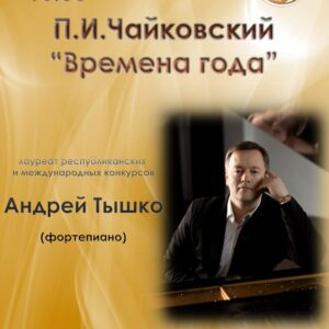 25 сентября в 16.30 в Большом зале с концертной программой П.И. Чайковский «Времена года» выступит лауреат республиканских и международных конкурсов — Андрей Тышко (фортепиано). Концерт