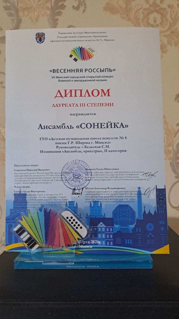 25 марта 2026 г. состоялось закрытие VII Минского городского открытого конкурса баянной и аккордеонной музыки «Весенняя россыпь».