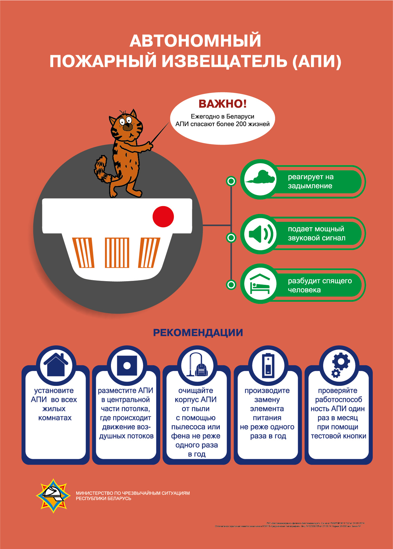 С 24 ноября по 14 декабря в республике проходит широкомасштабная информационная кампания, которая направленная на информирование населения об эффективности установки автономных пожарных извещателей. Ведь одна из основных опасностей при пожаре — это угарный газ и дым. Они бесшумны, не имеют запаха и способны за минуты лишить человека сознания во сне. А автономный пожарный извещатель (АПИ) создан, чтобы дать вам самое ценное — время на спасение.
