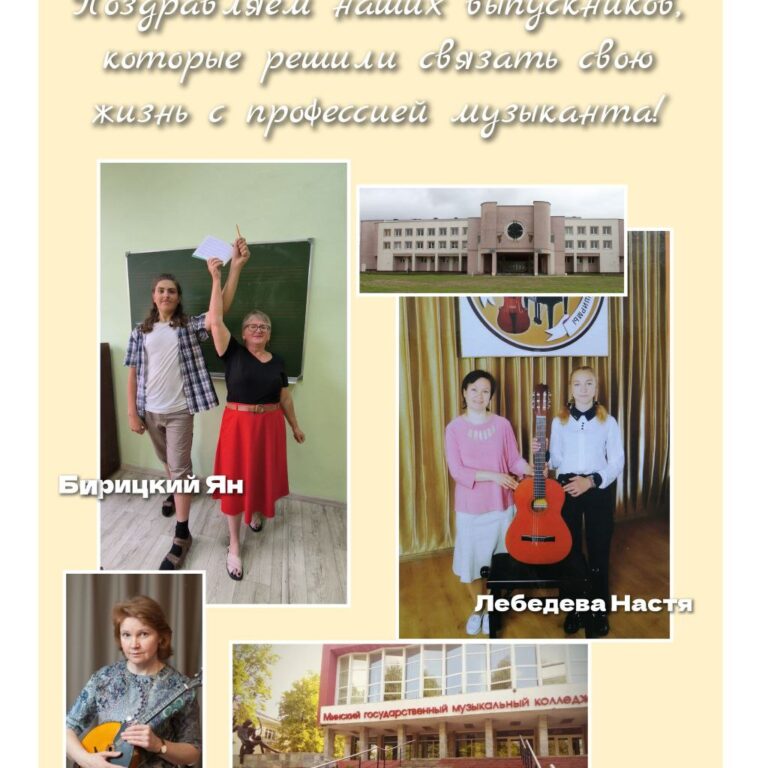 Поздравляем наших выпускников, которые решили связать свою жизнь с профессией музыканта! Поступила в Минский государственный колледж искусств на I курс: Лебедева Анастасия – отделение «Народное