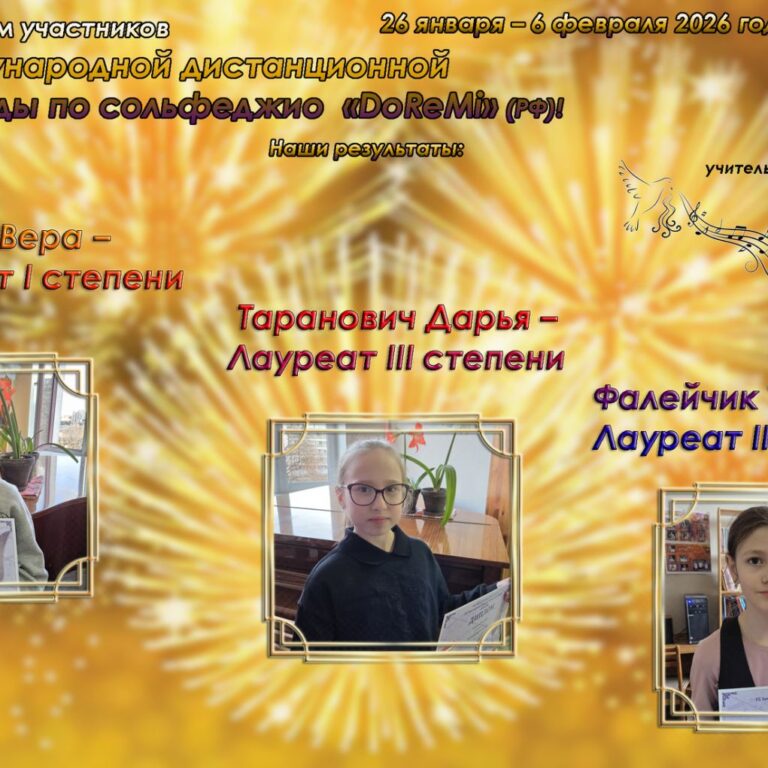 Подведены итоги IX Международной олимпиады по сольфеджио «DoReMi» (Санкт-Петербург, 26 января – 6 февраля 2026 года, дистанционно). Поздравляем наших ребят!👏👏👏 Ученики 3 класса: ⚡Киселёва Вера